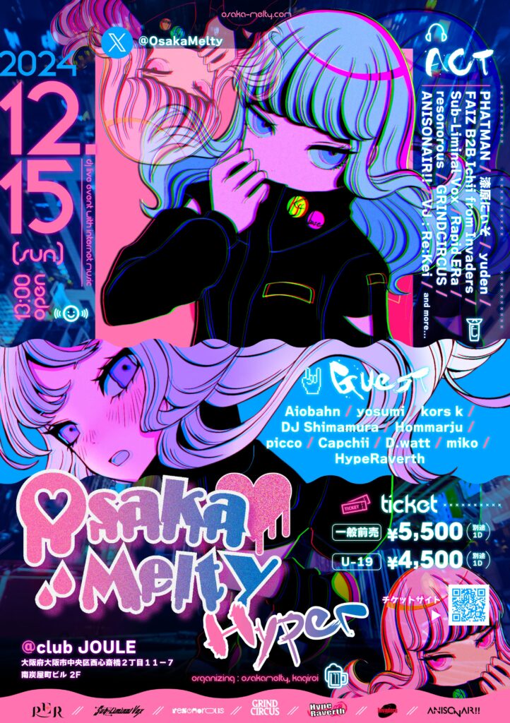 | 出演者 | Aiobahn / yosumi / kors k / DJ Shimamura / Hommarju / picco / Capchii / D.watt / miko / HypeRaverth / OsakaMelty/ and more… |